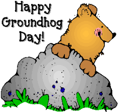 My oldest (Ko) has been talking about groundhog day all week. He has reminded me aleast 5 times we had to watch the "weather" on "news channel five" the see the "molehead" on "February two".....where he gets this I have no idea! I DVRed the today show just in case anyone wanted to sleep in -YEAH RIGHT- so we could catch the groundhog in action. Sadly no real action just a guy in a top hat holding up a chubby groundhog - who apparently did see his shadow. Buy hey I guess if this means six more weeks of winter similar to the winter we are having now (temps. way above average) I can't complain!